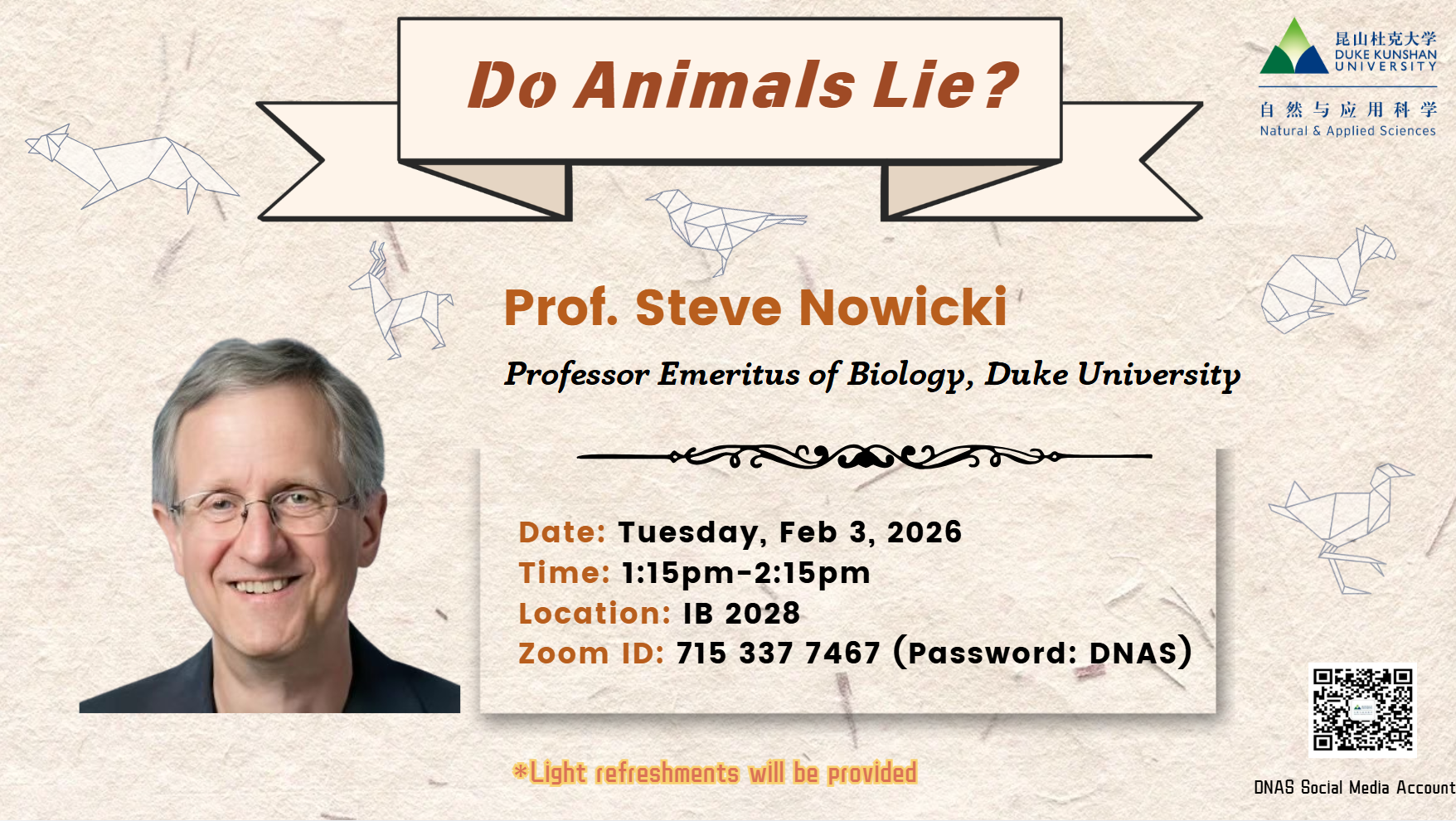 Zoom ID: 715 337 7467 (Password: DNAS)